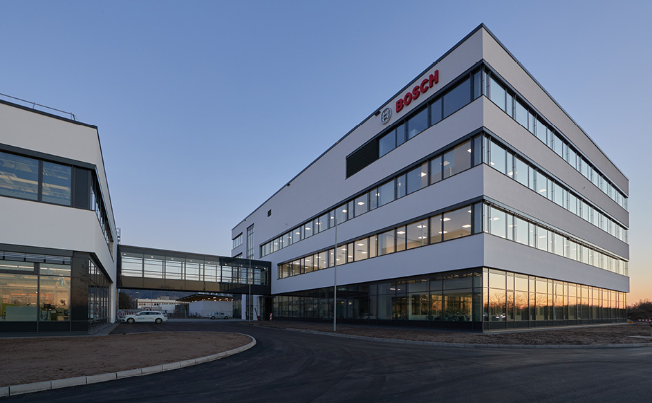 Der Gebäudekomplex aus einem dreigeschossigen Produktionsgebäude, einer eingeschossigen Produktionshalle und einem viergeschossigen Bürogebäude am Standort in Bühl wurde von der Robert Bosch GmbH, Gerlingen-Schillerhöhe beauftragt.
