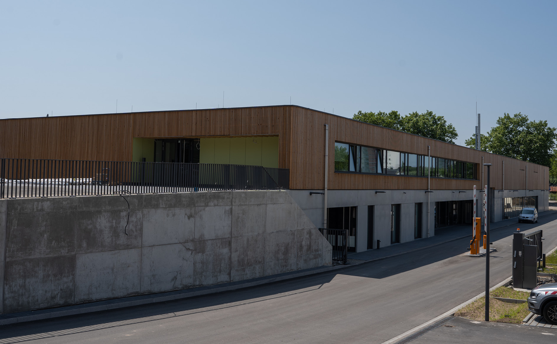 Der Gebäudekomplex zur Neuordnung des Bauhofes in Rastatt mit rund 100 Metern Länge und 25 Metern Breite entlang der Plittersdorfer Straße besteht aus zwei Baukörpern:
