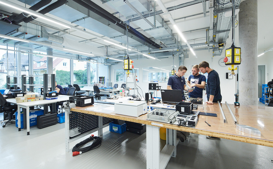 Das 1. Obergeschoss bietet den 210 Auszubildenden der Sick AG und den bei der Sick AG angestellten Hochschülerinnen und Hochschülern der Dualen Hochschule Baden-Württemberg auf 1.300 qm ein angenehmes Lernen und Arbeiten. Das Ausbildungszentrum verfügt über Schulungsräume, Besprechungszimmer und Büro-, Werkstatt-, Labor- und Maschinenarbeitsplätze.
